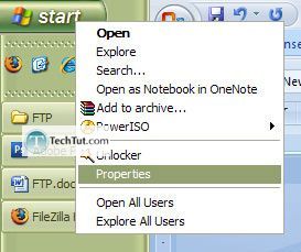 First, to get FTP in Windows XP, lets activate the “My Network Places” and set it up so that it always appears in the Start Menu.Right-click on your start button and then select “Properties”.