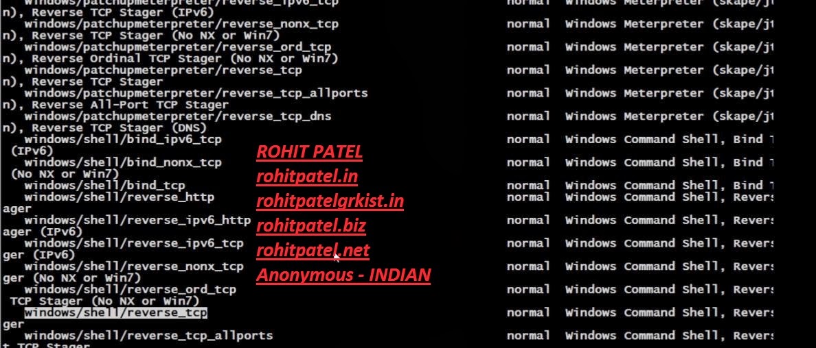 But in our case we will be usiing the payload called "windows/shell/reverse_tcp".