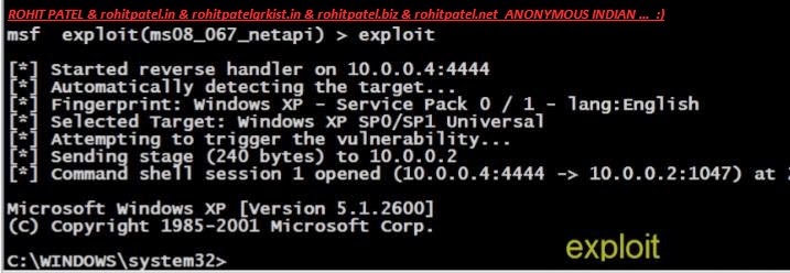 Vulnerability : This is the know Vulnerability In Windows XP and Server 2003, MS08-067 vulnerability that uses the netapi module in the Windows SMB Protocol that may be used for arbitrary code execution. The Link's for more Information regarding this Vulnerability is -