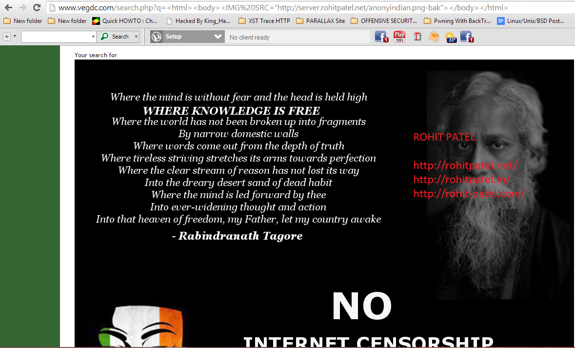 Thus, Amongst the dozens of sites here are few of them which I have Defaced via HTML Injections. This was done via a Simple XSS technique. An Advanced version of the XSS technique contains huge number of sites which includes techniques like DOM (Document Object Model ==> Java-Script) Based Attack, Non Persistent Attack, Persistent Attack on the sites which can even lead to provide the full System Access when Manipulated affectedly.